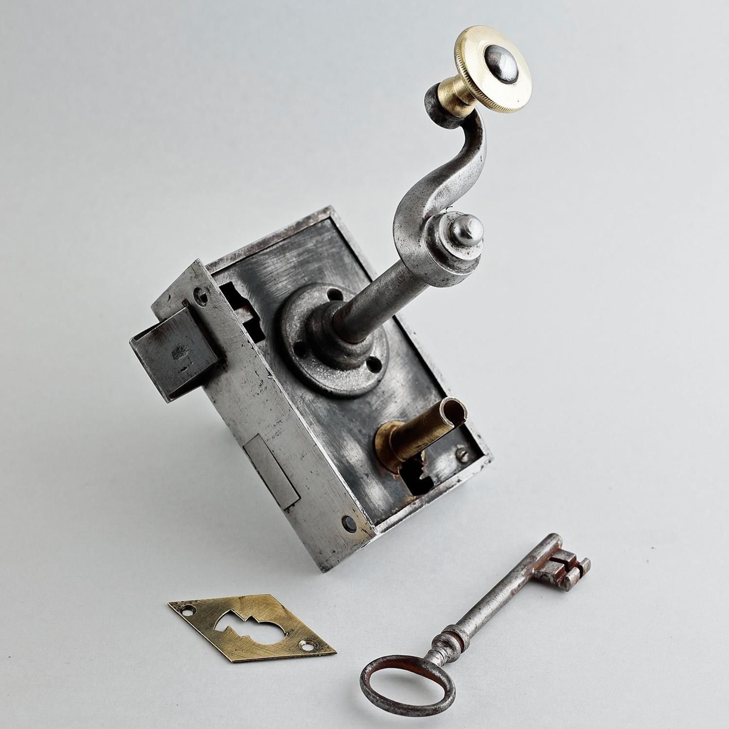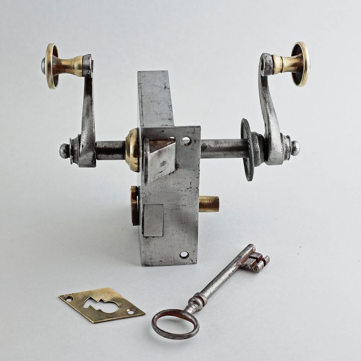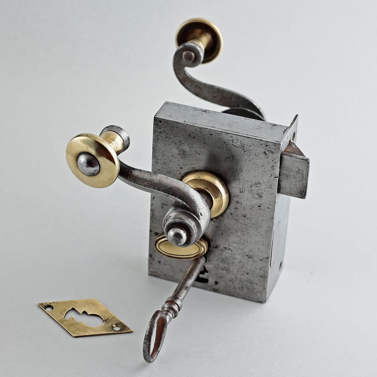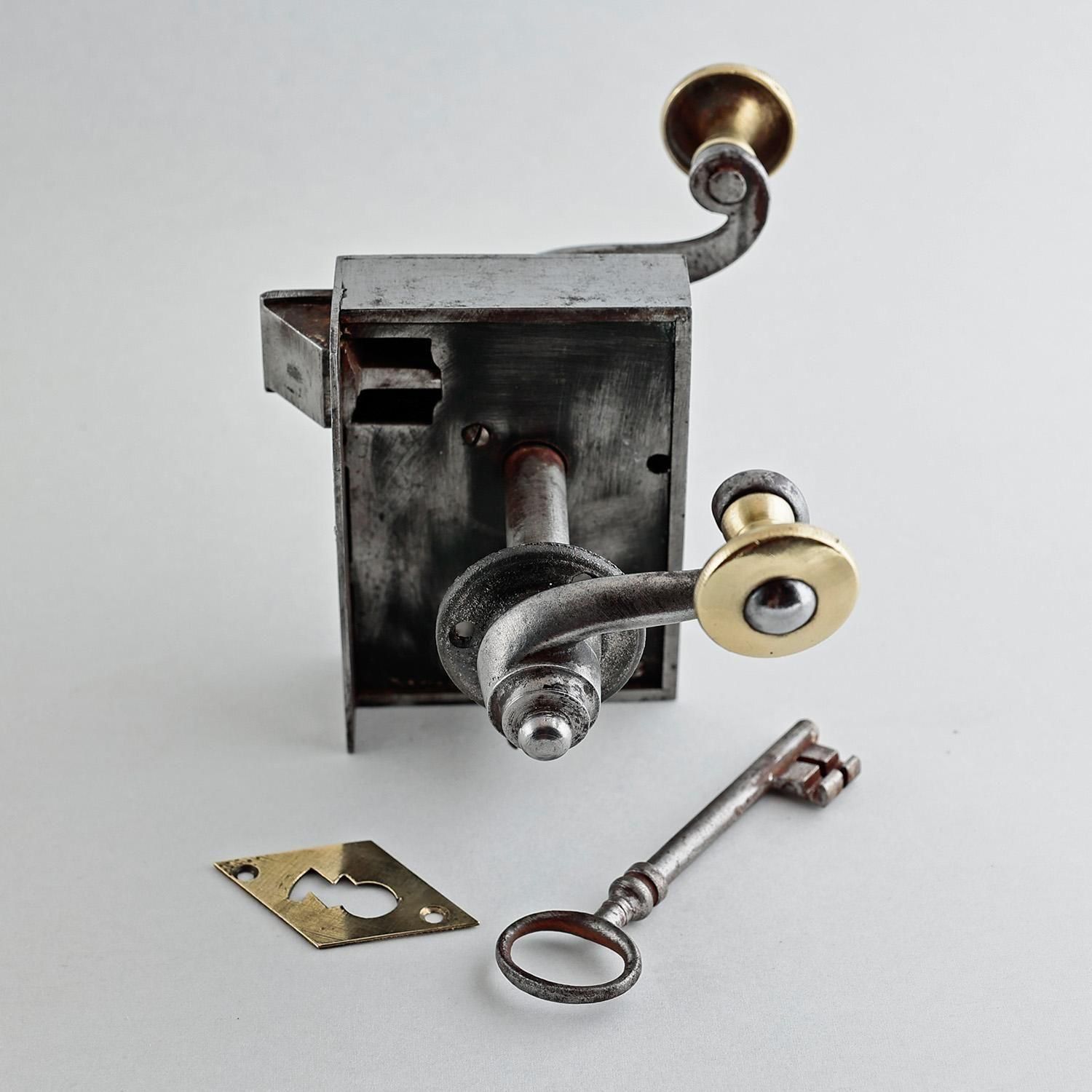 真鍮とアイアン レバー形ドアノブ 外付けラッチ 鍵付き 右吊り元・内開き フレンチアンティーク インダストリアル ok-52