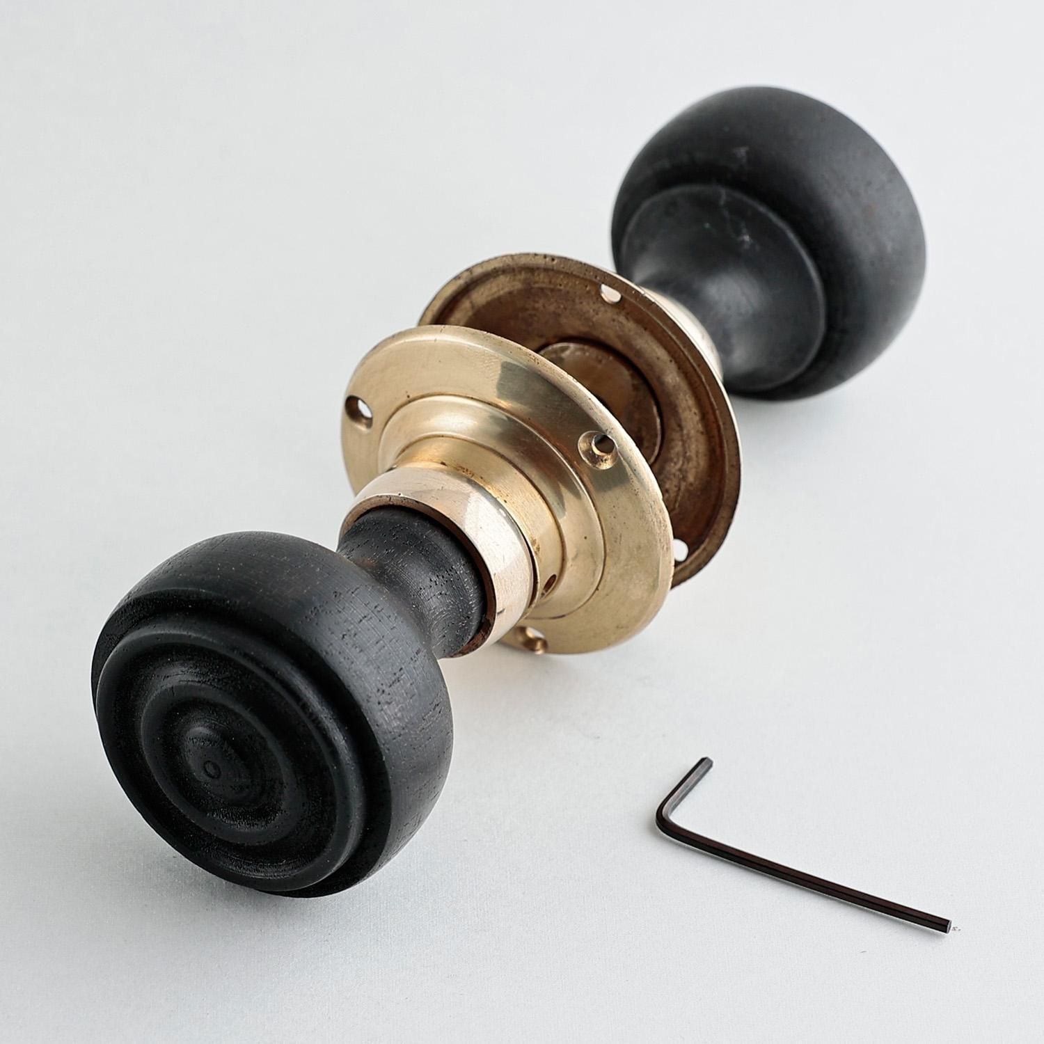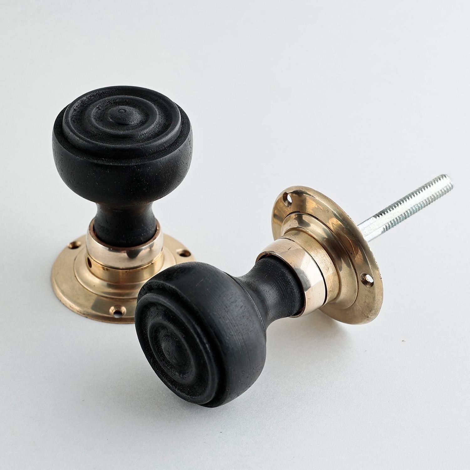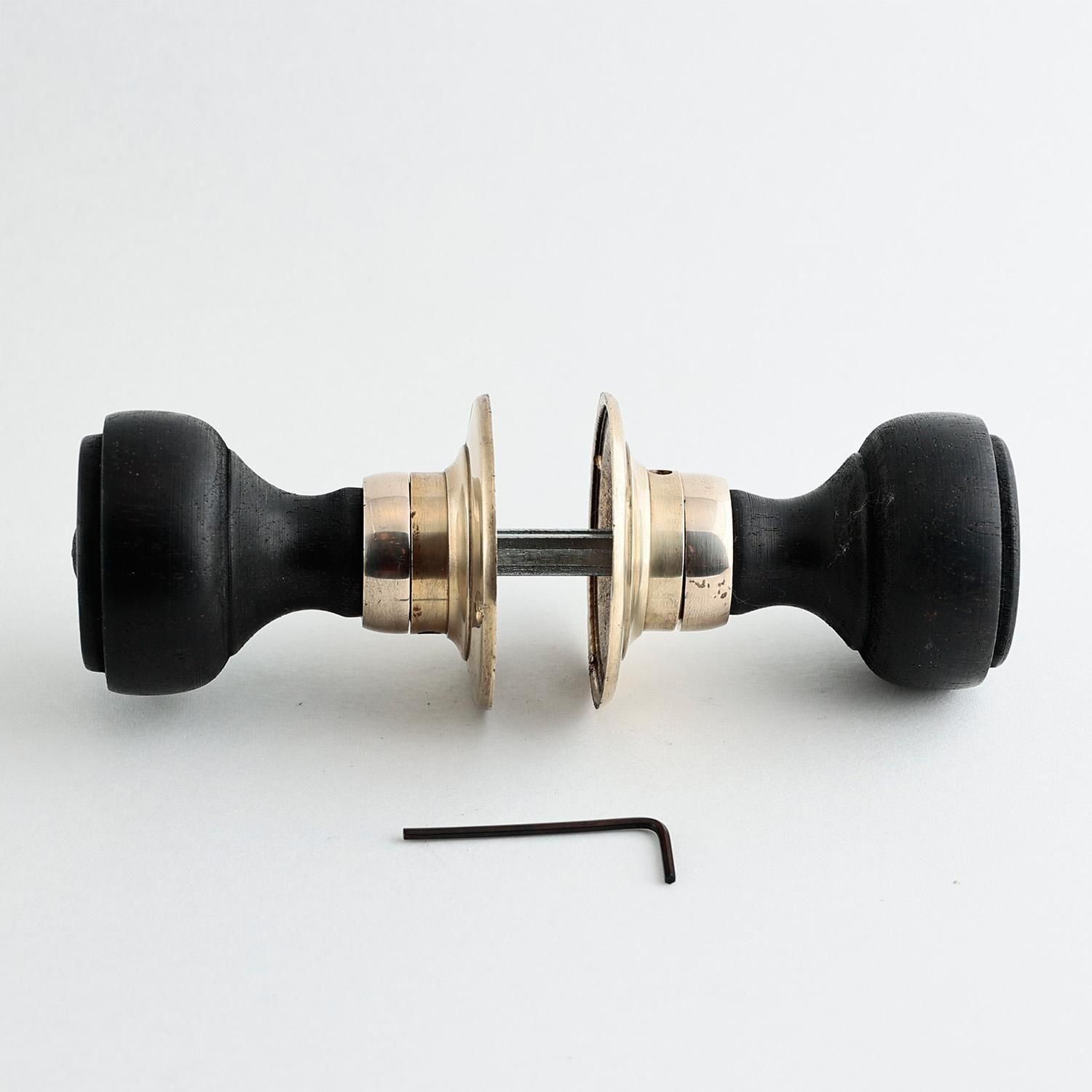 イギリス製でオークと無垢の真鍮で作られたドアノブです。木材部分はオイル仕上げだと思われます。